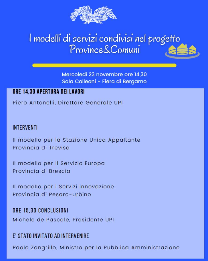 Modelli di servizi condivisi nel progetto Province&Comuni. Evento del 23 novembre